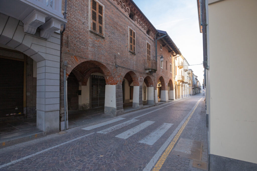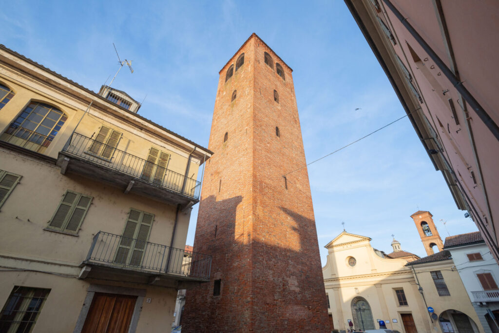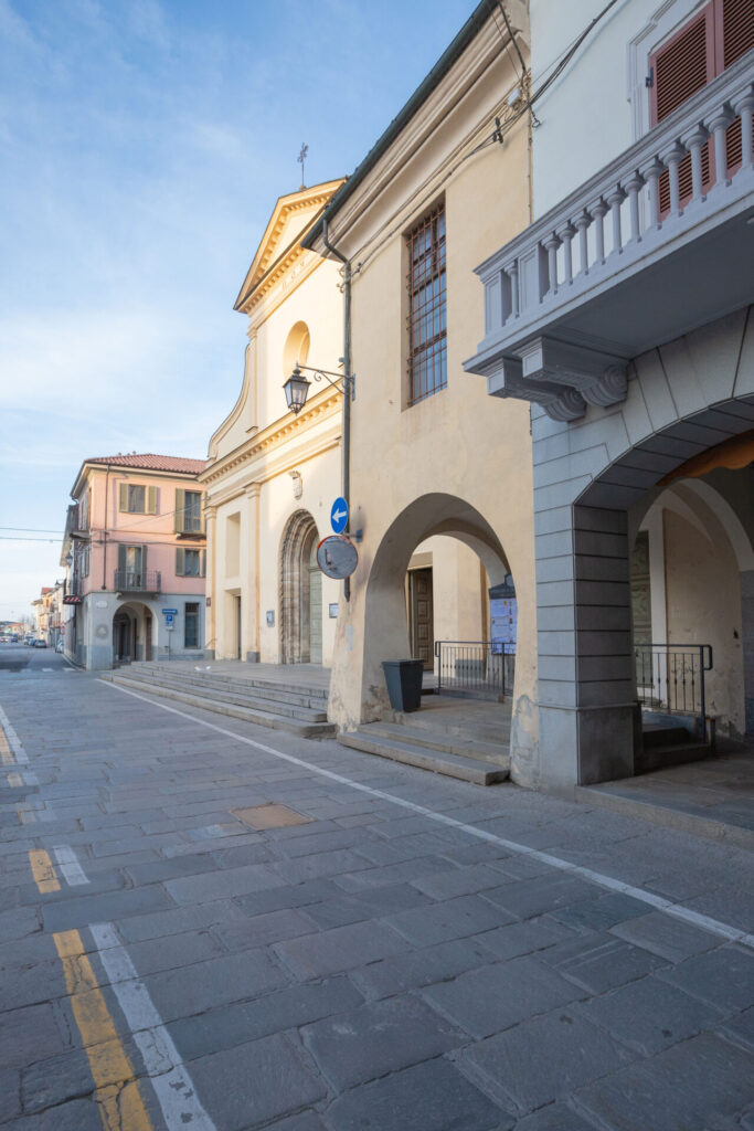 Ad esempio, nelle belle stampe del “Theatrum statuum Sabaudiae” che risalgono al 1682 li si identificano molto bene: entrando dalla porta per Vercelli, a nord, si accede in una piazza con a destra una possente torre e a sinistra la Parrocchia.