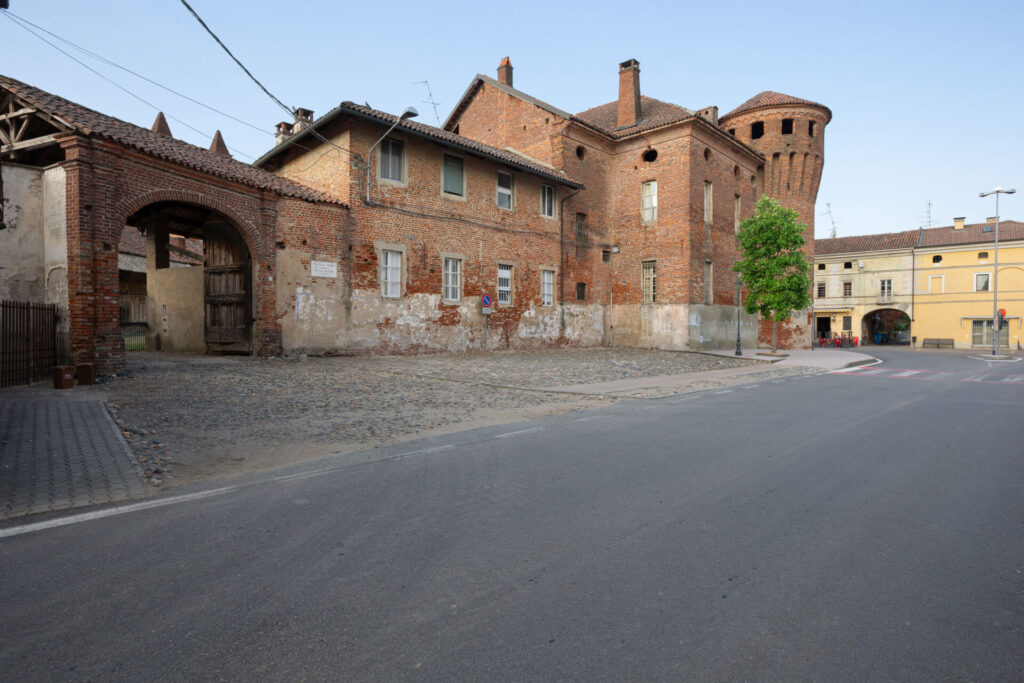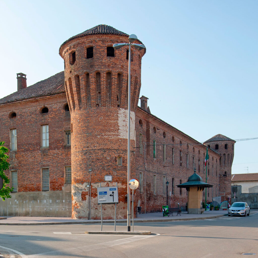 Per conto dell’Abbazia a Prarolo fu costruito un castello che è citato per la prima volta in un documento del 1398.Il castello è caratterizzato da una torre angolare cilindrica e da una quadrangolare, indipendente, con caditoie e due torricelle soprelevate. La torre quadrangolare costituiva l’accesso del castello tramite un ponte levatoio di cui sono ancora bene evidenti le tracce. L’interno della torre, a lungo usato per scopi agricoli, non risulta interessato dall’ampio rimaneggiamento che, a metà del XVIII secolo, ha dato al castello di Prarolo il suo aspetto attuale. Gli abati benedettini soggiornavano spesso presso il castello di Prarolo; per tale motivo l’abbazia è anche nota come Abbazia di Prarolo.