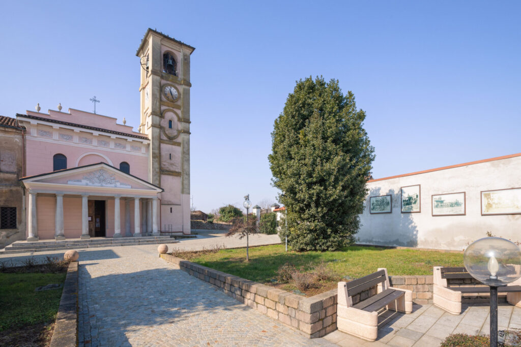Centrale nel borgo è la Chiesa parrocchiale di San Giacomo Apostolo, che risalirebbe al 1440 secondo alcuni documenti. Dal punto di vista architettonico essa appare come il risultato di numerosi interventi di ampliamento e rimaneggiamento che ne hanno stravolto l’impianto originario. Risalgono all’Ottocento la costruzione del coro e del porticato d’ingresso addossato alla facciata originaria, il rifacimento della stessa e la creazione della navata laterale destra, con l’altare dedicato alla Madonna del Rosario. In seguito ad ulteriori opere di ampliamento che videro la costruzione della navata laterale di sinistra con l’altare delle Anime e l’aggiunta del battistero e della sacrestia, la chiesa venne ufficialmente consacrata dall”arcivescovo Valfré di Bonzo. Intorno alla metà del XX secolo vennero realizzati gli ultimi lavori di risistemazione interna che definirono l’aspetto attuale della chiesa.